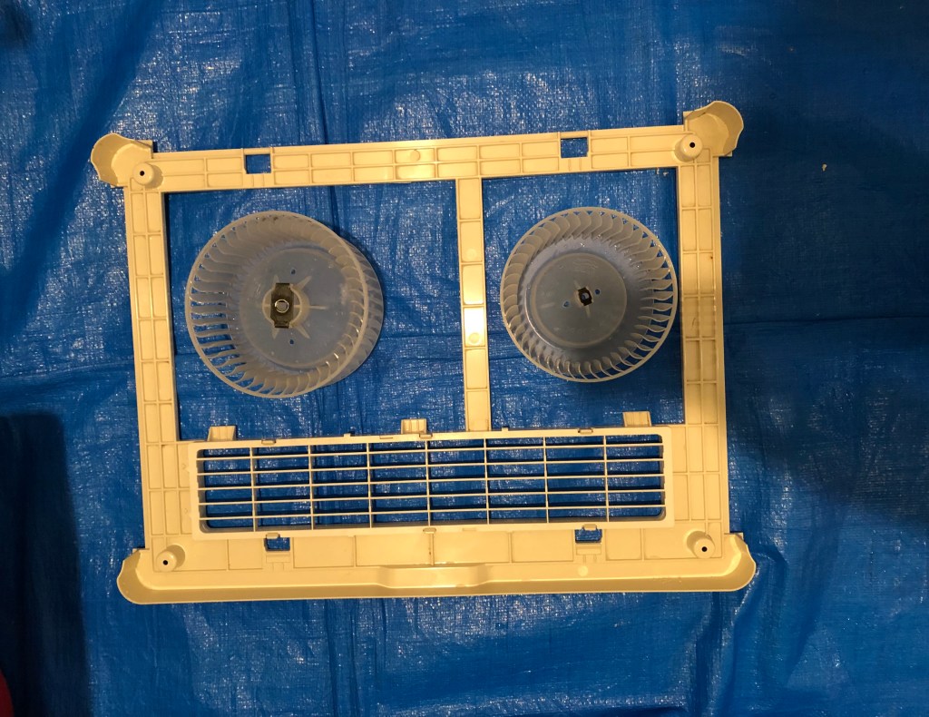 乾燥機内部の汚れも取れ、カバーやファンがスッキリ綺麗になりました。お客様に見て頂いた際、ファンが黒色の部品かと見間違える位汚れていたので、特に喜んでいらっしゃいました。ファンやフィルターも目詰まりしていたので、換気効率も上がると思います。