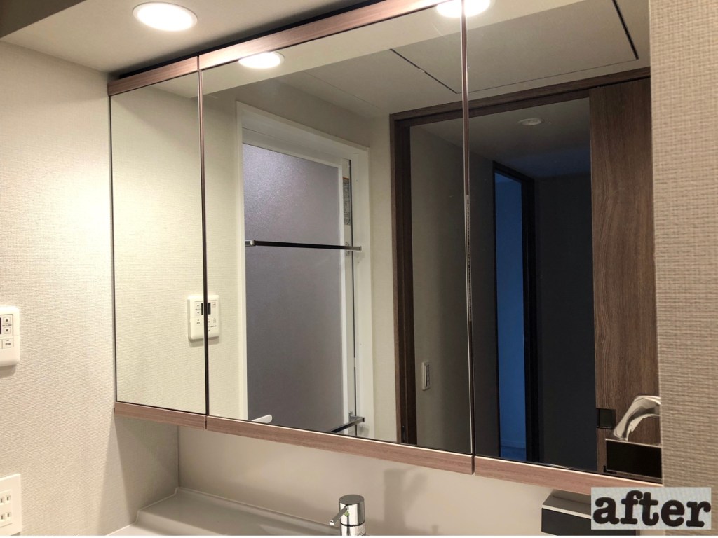 浴室は扉の外側、窓内側も含め浴室全体が標準施工範囲になります。エプロン内部、換気乾燥機内部はオプション対応です。鏡のウロコ(水垢、カルキ汚れ)については、こびり付きが強い場合等についてはオプション対応となる場合があります。