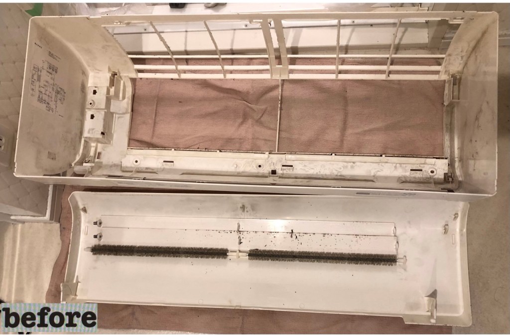 ここまで汚れていると、室内の空気の取り込みにも影響が出てしまい、効率が下がってしまいます。実際、冷房温度低めで使われていました。